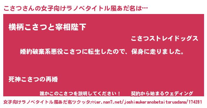 | 胡散臭い通販商品みたいなあだ名 | 『必ず成功する霊験あらたかなお札…その名も「こさつ」』 |