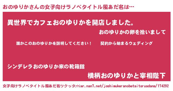 | 男性向けラノベタイトル風あだ名 | 『オノユリカアートオンライン』 |