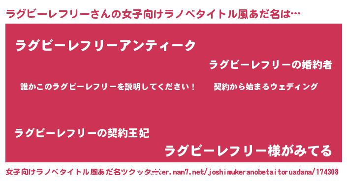 | 男性向けラノベタイトル風あだ名 | 『ラグビーレフリーアートオンライン』 |