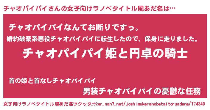 | 男性向けラノベタイトル風あだ名 | 『チャオパイパイの憂鬱』 |