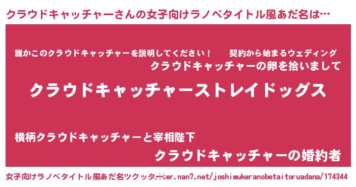 | 男性向けラノベタイトル風あだ名 | 『Re:クラウドキャッチャーから始める異世界生活』 |