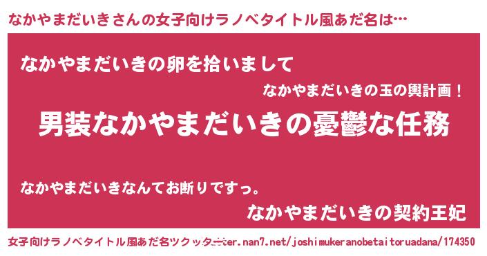 | 男性向けラノベタイトル風あだ名 | 『うちのなかやまだいきが世界を掌握している!』 |