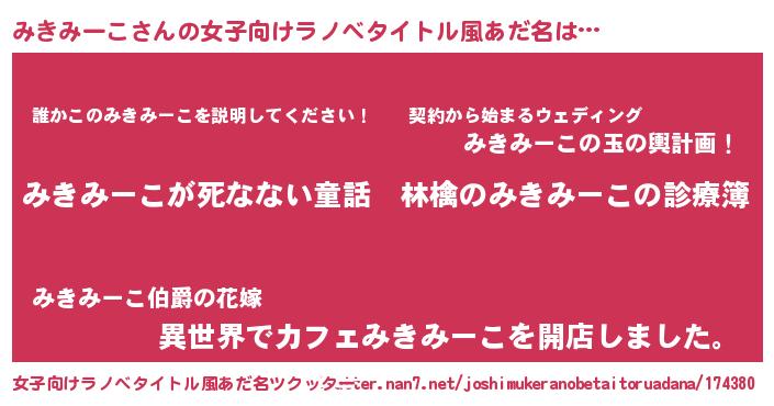 | 意味不明あだ名 | 『住所不定無職みきみーこ(5歳)』 |