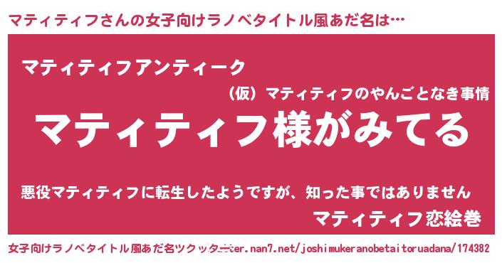| 男性向けラノベタイトル風あだ名 | 『マティティフの嫁は女の子じゃないと思った?』 |