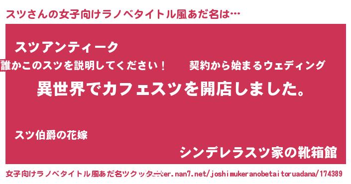 | 男性向けラノベタイトル風あだ名 | 『誰もが恐れるあのスツが、ぼくの専属メイドになるようです。』 |
