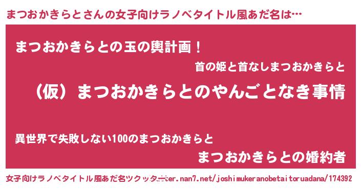 | 男性向けラノベタイトル風あだ名 | 『まつおかきらとの憂鬱』 |