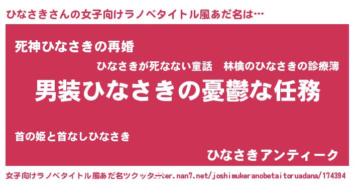 | ヒーロー風カッコイイあだ名 | 『慈愛の使者ひなさき』『仮面ヒナダー』 |