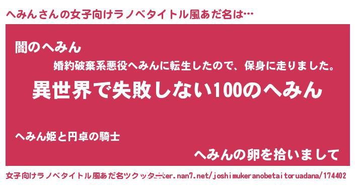 | 意味不明あだ名 | 『永久保存へみん』『自称へみん』 |