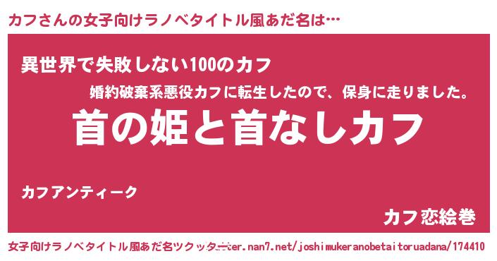 | 男性向けラノベタイトル風あだ名 | 『はたらくカフさま!』『カフスレイヤー』 |