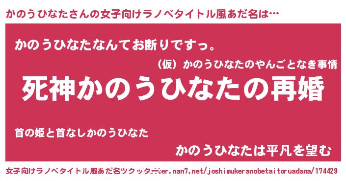 | 男性向けラノベタイトル風あだ名 | 『ノーゲーム・ノーカノウヒナタ』 |