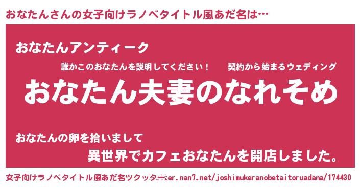 | 胡散臭い通販商品みたいなあだ名 | 『100人中100人が認めたマグネット磁石…その名も「おなたん」』 |