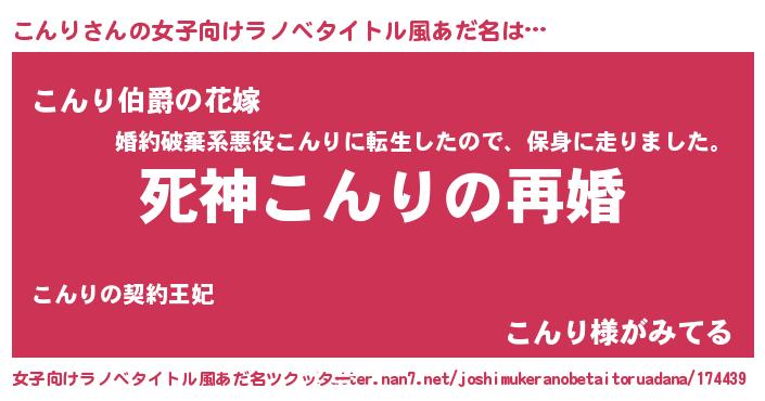 | 男性向けラノベタイトル風あだ名 | 『ノーゲーム・ノーコンリ』 |