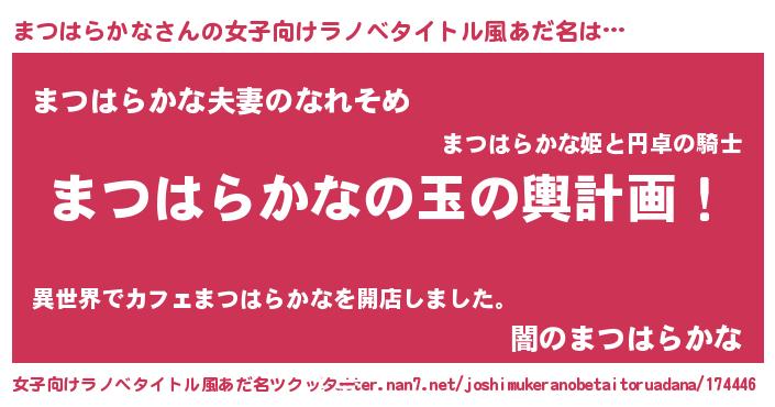 | 伝説のあだ名 | 『救世主となる占い師まつはらかな』 |