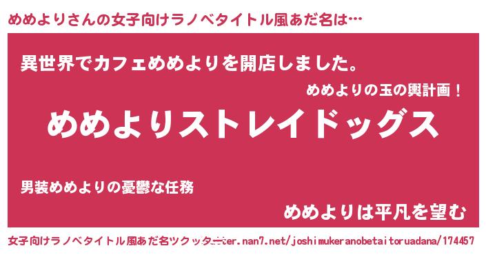 | 意味不明あだ名 | 『自称めめより』『永久保存めめより』 |