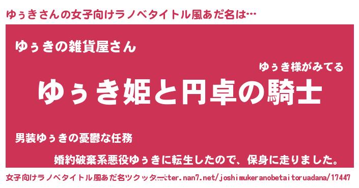 | 男性向けラノベタイトル風あだ名 | 『ユゥキアートオンライン』 |