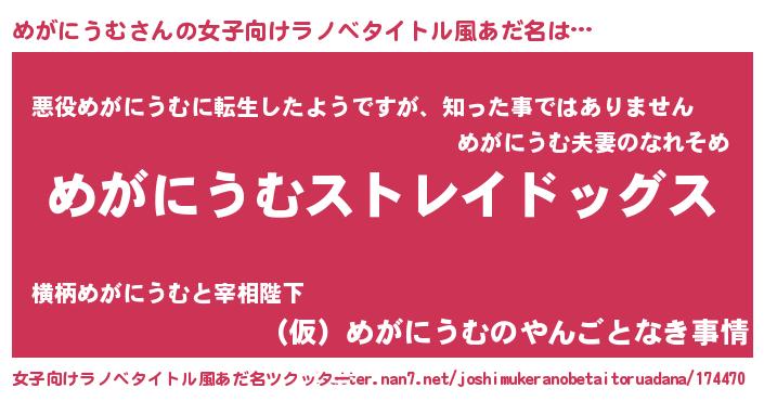 | ヘコむあだ名 | 『めがもー』『めがぷりん』『つくし』 |