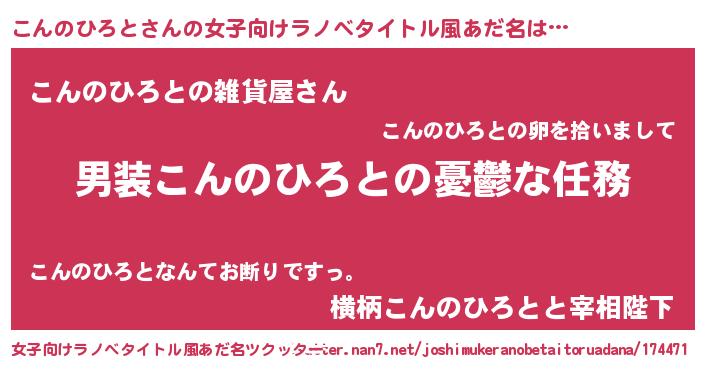 | 胡散臭い通販商品みたいなあだ名 | 『運命の人と巡り会える高級そうな絵画…その名も「こんのひろと」』 |