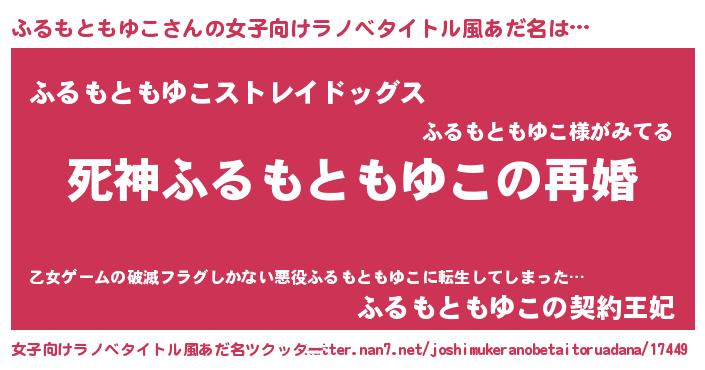 | ヘコむあだ名 | 『ふるもともゆこ(苦笑)』『ふるっぺ』 |