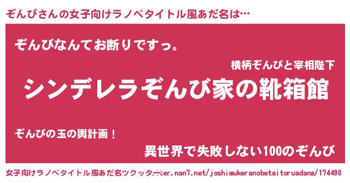 | 男性向けラノベタイトル風あだ名 | 『緋弾のゾンビ』『魔法科高校のぞんび』 |