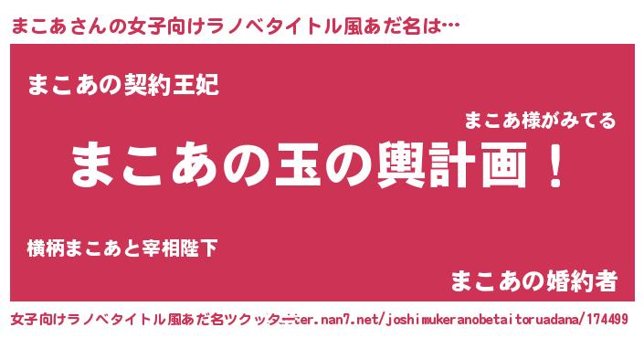 | 意味不明あだ名 | 『ニラ科まこあ属』『永久保存まこあ』 |