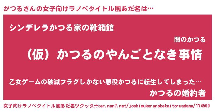 | 男性向けラノベタイトル風あだ名 | 『かつるの憂鬱』 |