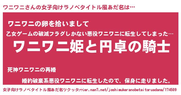| 胡散臭い通販商品みたいなあだ名 | 『モテモテ間違いなし霊験あらたかなお札…その名も「ワニワニ」』 |