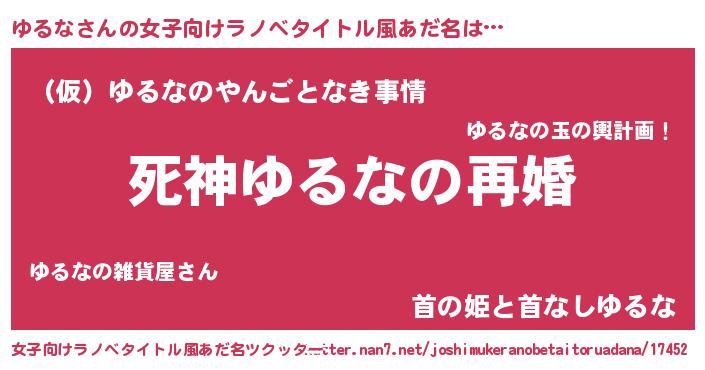 | 伝説のあだ名 | 『救世主となる錬金術士ゆるな』 |