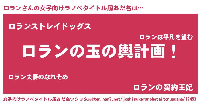 | 意味不明あだ名 | 『ニラ科ロラン属』『自称ロラン』 |