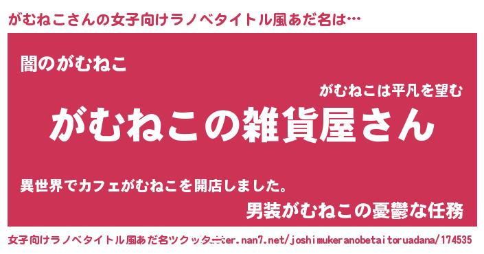 | 男性向けラノベタイトル風あだ名 | 『やはりがむねこの青春ラブコメはまちがっている 』 |