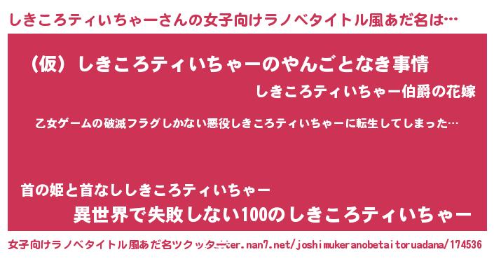 | 恥ずかしいあだ名 | 『プリティーしきころティいちゃー』 |
