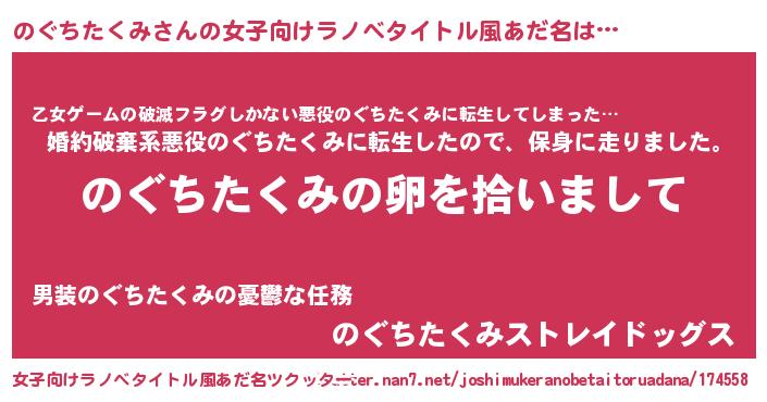 | 胡散臭い通販商品みたいなあだ名 | 『伝統あるサプリメント…その名も「のぐちたくみ」』 |