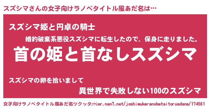 | 胡散臭い通販商品みたいなあだ名 | 『必ず成功する霊験あらたかなお札…その名も「スズシマ」』 |