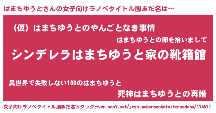 | 男性向けラノベタイトル風あだ名 | 『冴えないはまちゆうとの育てかた』 |