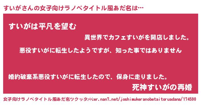 | 胡散臭い通販商品みたいなあだ名 | 『あなたにだけ特別に提供する限定10本のレアな日本酒…その名も「すいが」』 |