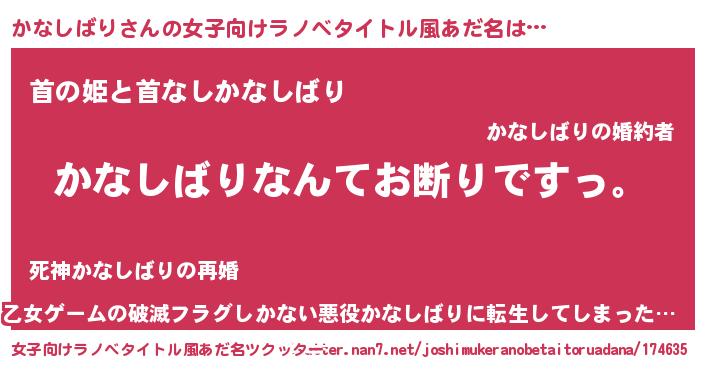 | ヒーロー風カッコイイあだ名 | 『超時空戦士カナシバリ』『仮面カナダー』 |