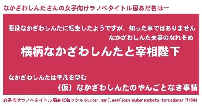 | 男性向けラノベタイトル風あだ名 | 『なかざわしんたに滅ぼされるだけの簡単なお仕事です』 |