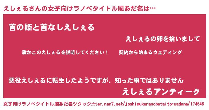 | 胡散臭い通販商品みたいなあだ名 | 『億万長者になれるブレスレット…その名も「えしぇる」』 |