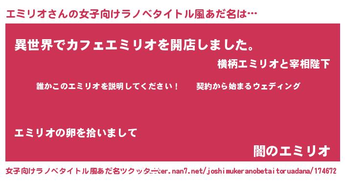 | 男性向けラノベタイトル風あだ名 | 『エミリオアートオンライン』 |