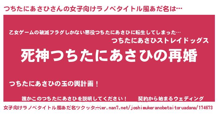 | 男性向けラノベタイトル風あだ名 | 『ノーゲーム・ノーツチタニアサヒ』 |
