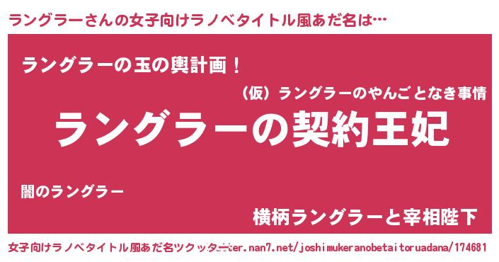 | 胡散臭い通販商品みたいなあだ名 | 『来世でも幸せになれる健康食品…その名も「ラングラー」』 |