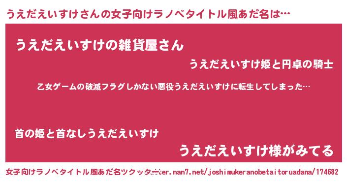 | 意味不明あだ名 | 『住所不定無職うえだえいすけ(86歳)』 |