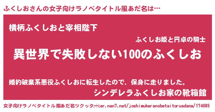 | 男性向けラノベタイトル風あだ名 | 『ふくしおという概念が存在しない退屈な世界 』 |