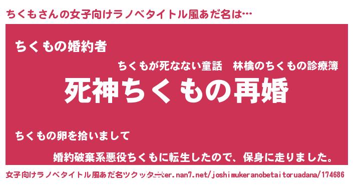 | ファンタジー風あだ名 | 『クインチット』『エターナルチクモー』 |