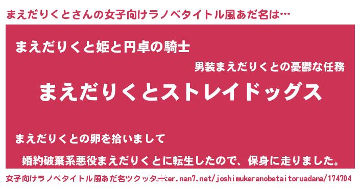 | 男性向けラノベタイトル風あだ名 | 『Re:まえだりくとから始める異世界生活』 |