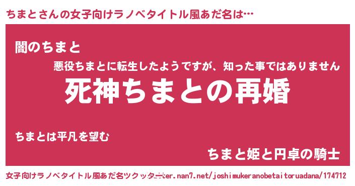 | 男性向けラノベタイトル風あだ名 | 『ノーゲーム・ノーチマト』 |