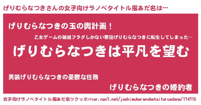 | 男性向けラノベタイトル風あだ名 | 『ダンジョンにげりむらなつきを求めるのは間違っているだろうか』 |