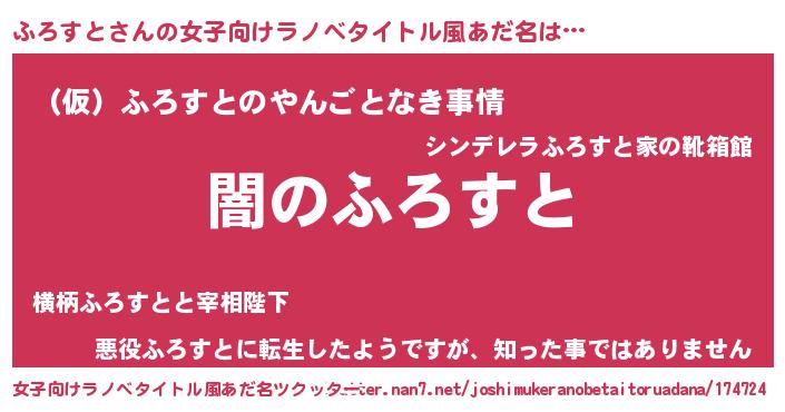 | 男性向けラノベタイトル風あだ名 | 『Re:ふろすとから始める異世界生活』 |