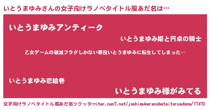 男性向けラノベタイトル風あだ名 | 『魔弾の王といとうまゆみ』 |
