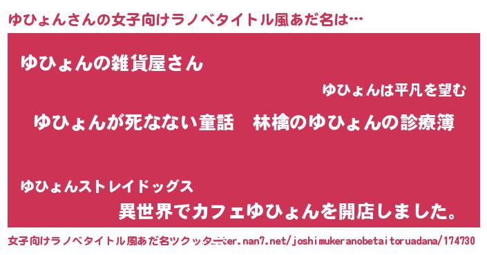 | 意味不明あだ名 | 『住所不定無職ゆひょん(8歳)』 |