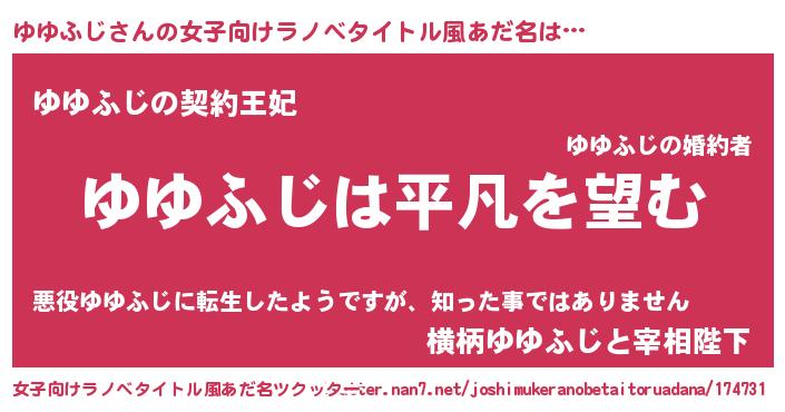 | 男性向けラノベタイトル風あだ名 | 『ダンジョンにゆゆふじを求めるのは間違っているだろうか』 |
